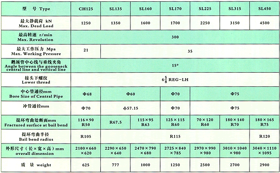 ● 冲管盘根总成为盒式结构,可在钻台上迅速更换不须拆下水龙带和鹅颈管。