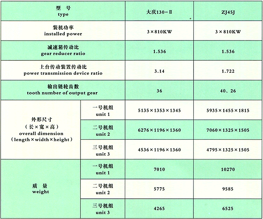 由三台柴油机驱动,带双泵、绞车、空压机、及发电机,功率满足需要。