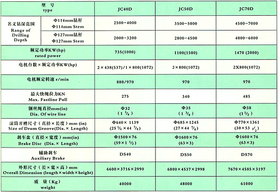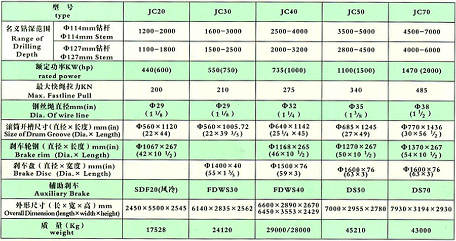 机械驱动绞车基本参数